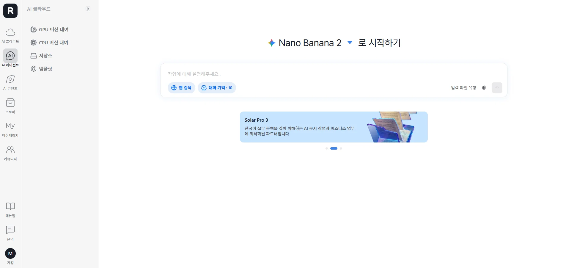 몬드리안에이아이의 GPUaaS 플랫폼 런유어에이아이(RunYour AI)는 고성능 GPU 인프라와 멀티 모델 AI Agent(Runyour Agent) 환경을 통합 제공합니다.