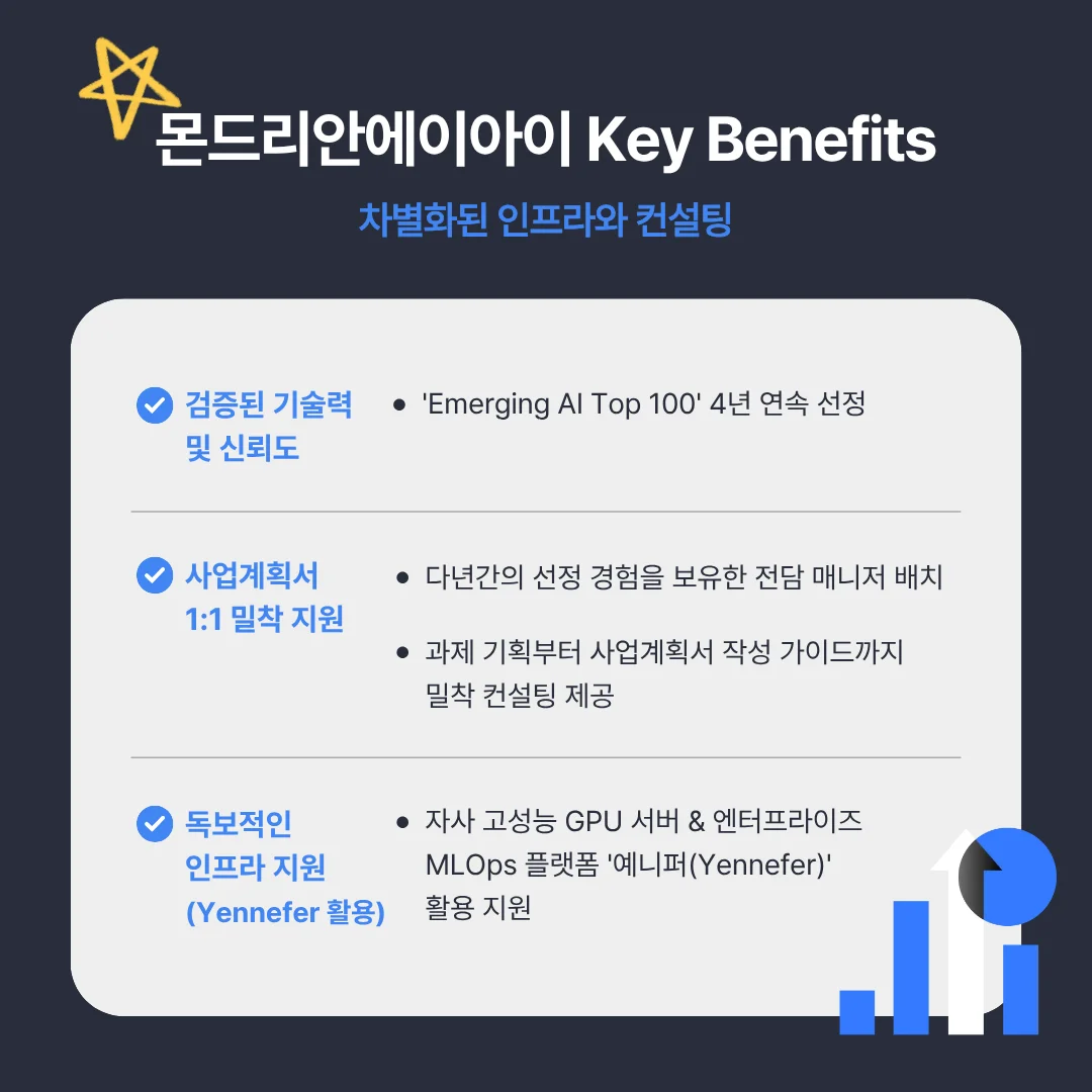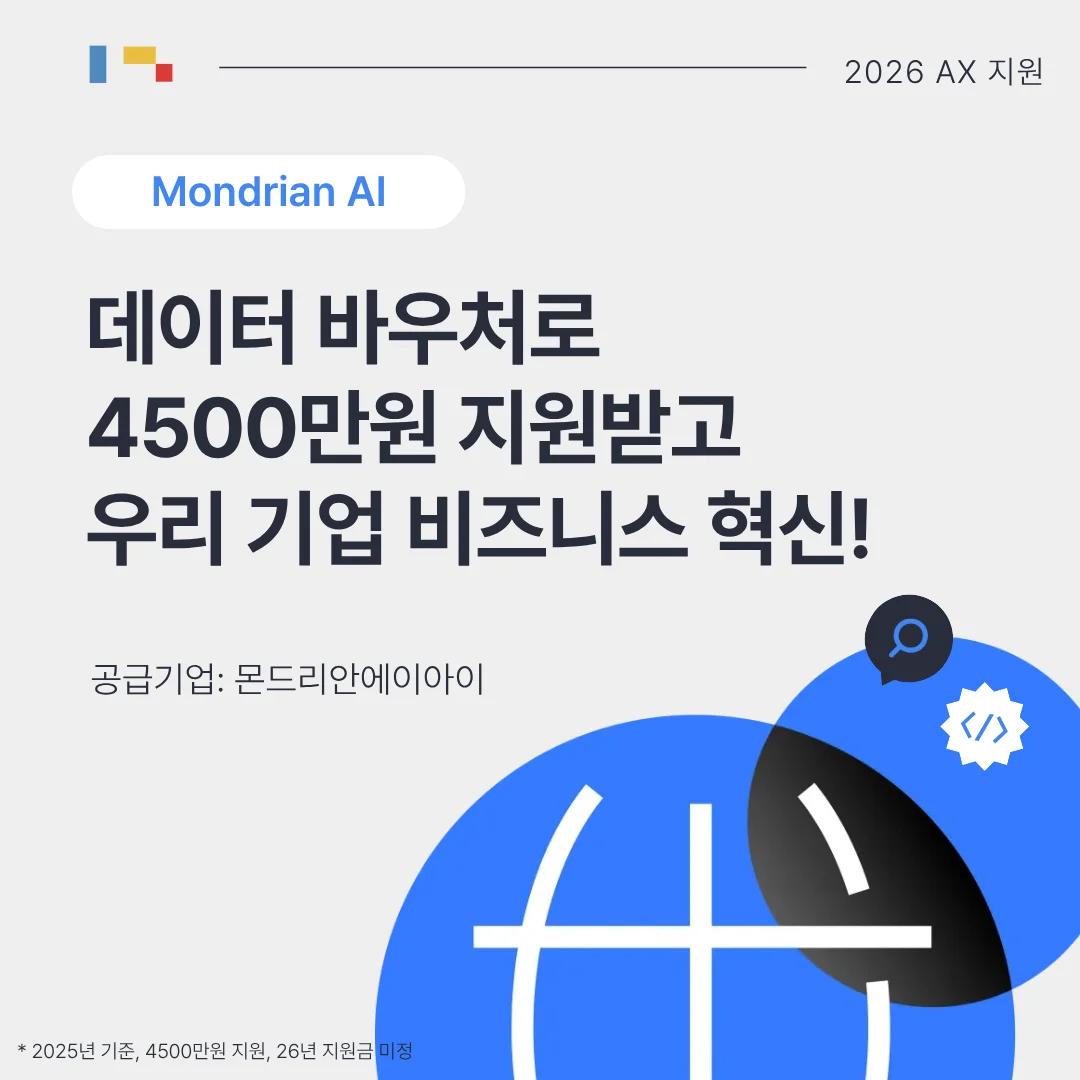 수요기업으로 선정되시면 정부지원금을 통해 서비스 도입 비용 부담을 최소화하면서, 몬드리안에이아이의 고도화된 엔터프라이즈 AI 솔루션을 활용하여 디지털 전환(DX)을 넘어 진정한 AI 전환(AX)을 실현하실 수 있습니다