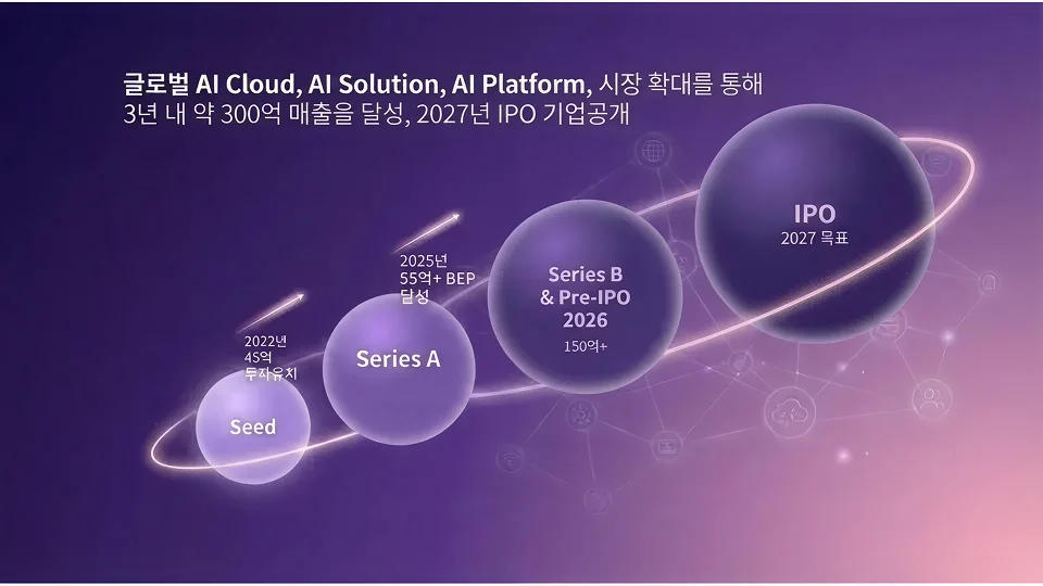 2027년 목표: 성공적인 IPO(기업공개)를 통해 3년 내 약 300억 원의 누적 매출을 달성하고, 대한민국을 대표하는 글로벌 AI 기술 리더로 자리매김하겠습니다.
